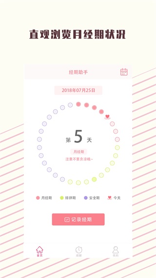 记录每日生理期的经期数、周期、症状、体温等等关键生理指标。