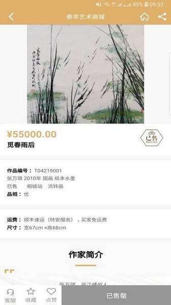 泰丰艺术商城一款非常专业的艺术品拍卖平台,通过app用户可以进行各种艺术品的在线交易和查看。软件中汇集了大量知名艺术家的作品信息并详细展示给用户了解哦,让用户足不出户就可以了解到自己喜欢的商品内容!有需要的用户快来下载体验吧~