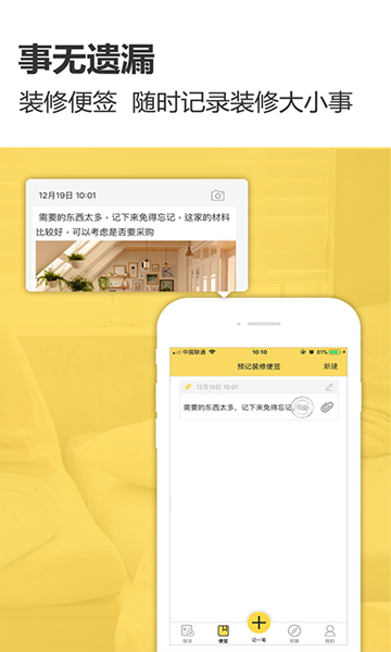 装修记账让你可以在这里随时记录自己家里面的装修信息,还可以查看各种装修案例哦。在平台上也可以根据自己的预算来进行估算,线上还提供了非常详细的装修报价单供你选择使用,你可以将每一笔订单都能保存起来,下次就可以直接在线支付了。欢迎有需要的朋友下载使用!