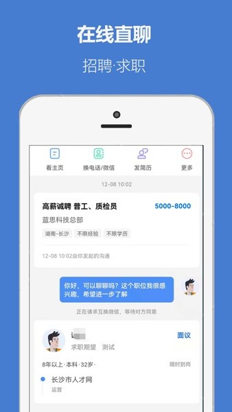 3、【直约面试】轻轻一点即可直接开聊,省去了中间环节,提高效率;