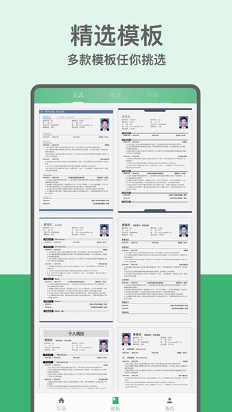 海量精美实用的简历模版可用于挑选与制作自己的简历或申请表格。