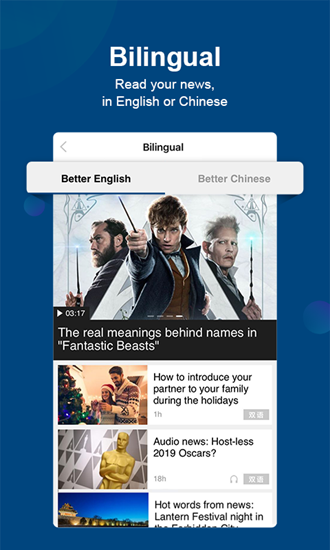 ChinaDaily双语版一款超级好用的手机阅读类APP,软件内置海量丰富的内容可以让您随意挑选感兴趣的板块进行浏览了解新闻详情更加便捷简单有趣。还有超多不同的栏目等您发现,满足不同读者的需求哦,欢迎下载!