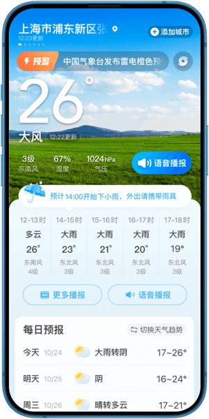 5、通过语音的方式就可以帮助您清楚的记录天气详情以及天气预警信息。