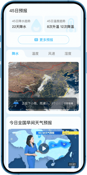 2、提前预测未来40天内的雨雪天气,给您带来最贴心的呵护。