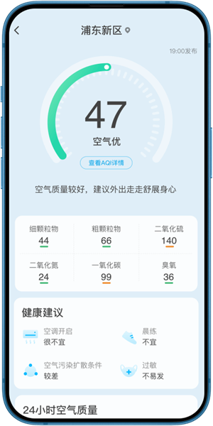 1、空气质量监控界面简洁明了,各种天气状况一看便知。