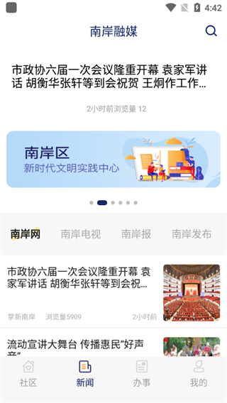 南杭区融媒体中心移动客户端是“互联网+”平台建设成果、新技术研发成果、数据资源整合能力、政务服务信息化建设成果的综合型门户。