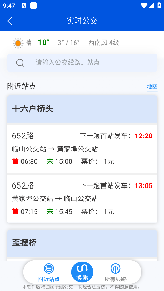 提供离线的地图界面查找公交线路情况并可自由切换公交行驶方向;
