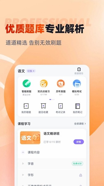 备考通app是专门为长沙地区用户打造的一款手机学习软件,在备考通中你可以在线进行各种题库练习哦,而且备考通app上还提供专业的课程内容等等!