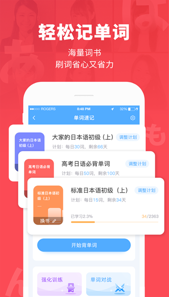 7.“录音回放”跟读评测系统,及时纠正错误发音,提升日语口语能力。