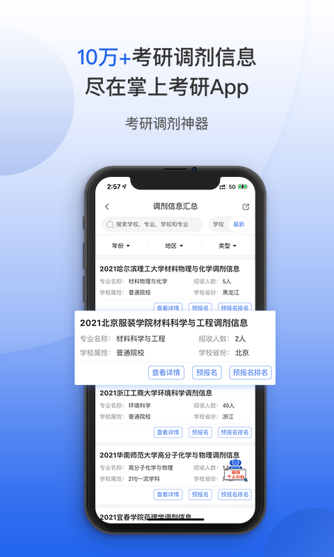 985/211硕博基地等院校招生简章、报录比、报录分数线等信息;