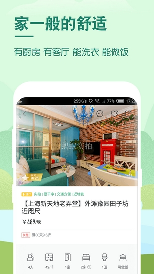 蚂蚁短租:汇集了全国各地上万套房源,涵盖各类主题,如亲子游玩、学校宿舍、情侣蜜月旅行等,为您解决出差在外的困扰。