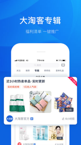 【大淘客联盟联盟】是一个为商家提供优惠促销信息的应用程序,帮助你以最低价格获得最大利益,让你实现自己的梦想;