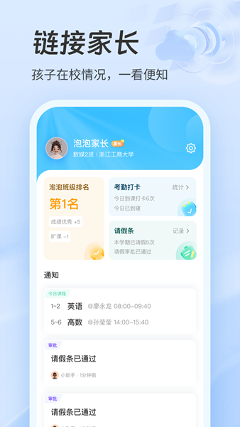 1、丰富多彩的校园活动:包括学校新闻、招生通知、班级动态、校内社交、班主任信箱等等。2、便捷化的日常工作体验:包含了请假申请、审批单处理、出差申请流程查询等常用业务模块,并且还提供了考勤打卡的功能。3、多终端覆盖范围:无论是PC端还是移动端,都可利用该软件实现数据同步更新。4、实时跟踪个人状态:通过“我的”板块及时接收到最新的通知及重要事件,确保不会错过任何重要事项。