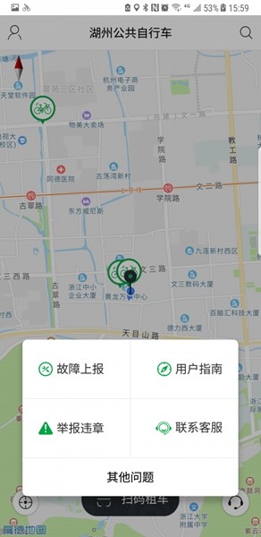 【地图显示】:更加直观清晰查看每个自行车的位置;