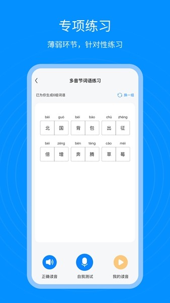 专项突破重点难点,每个词语都附带标准语音包帮助你高效背诵,有效提高你的普通话能力。