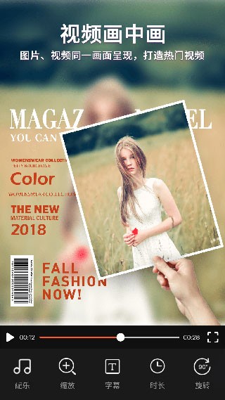 2、视频美化:自拍小短视频与亲情记录生活,可拍摄视频时给视频加音乐、涂鸦及滤波特效,多种风格让你的视频秒变大片。