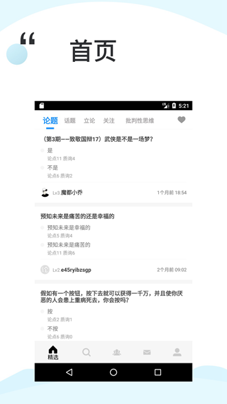 论否辩论的app是为广大网友提供的一款辩茶交流论坛,在论否这里有非常多的辩友们一起讨论,各种辩客在这里都可以找到你喜欢的朋友来讨论,让你可以更好的了解自己。