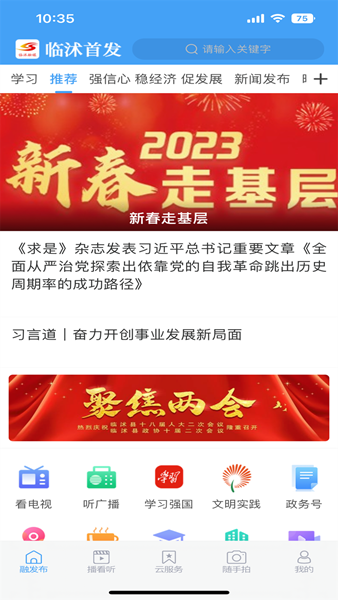 临OOK首发是为临mash县的用户打造的融媒体服务平台,在这里你能够找到超多新闻资讯进行了解和观看哦!而且这里有各种类型的电视、广播等等内容供你选择哟!同时还有当地最新的生活政务办理与查询功能让你随时随地都能查看最新的动态信息以及生活缴费等操作~