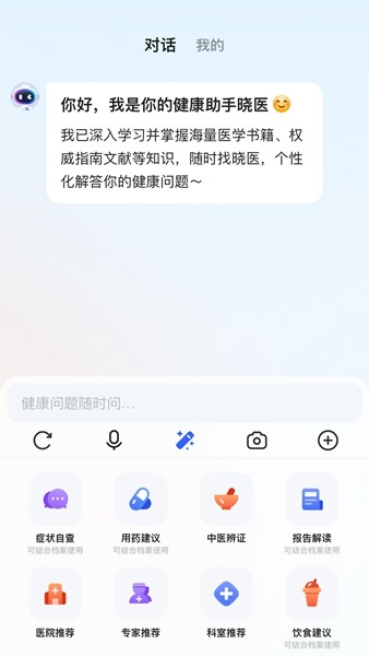 支持对用户日常身体状况、症状、用药等多维度进行综合分析评估,给出相应的建议方案.