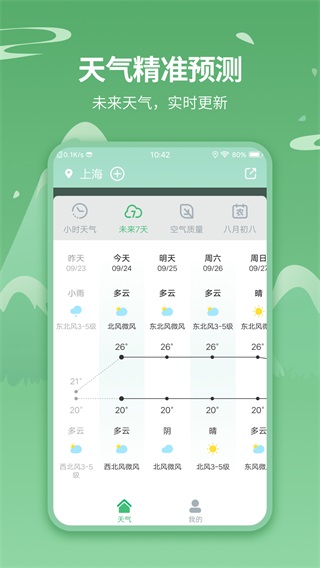 ●【逐时预报】实时掌握24H、45日天气状态,当日天气尽在掌控。