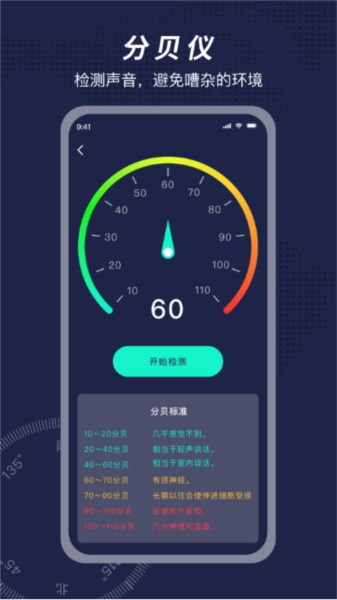 3、【分贝测试】智能识别当前的所在位置,测量出周边的环境噪音程度。