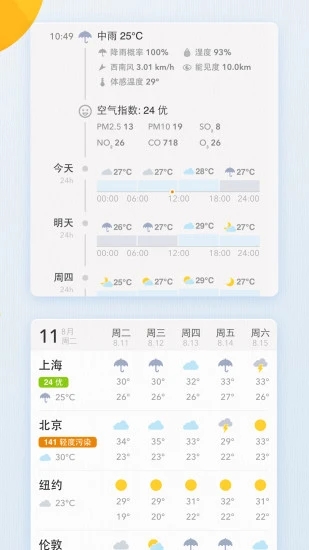 2)全球经纬度天气结果,无论身处何地都能快速获取您当前位置的天气预报和空气污染指数。