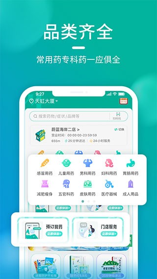 【便捷查找方式】:通过搜索栏输入药品名称或疾病症状来查询相应药品的信息与图片描述,也可根据分类迅速定位所需药品并可选购。