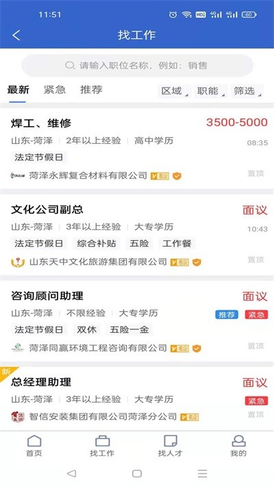 菏泽人才网是山东济南本地人求职者聚集地,找工作不再困难。在这里可以发布你的简历信息和职位推荐给附近的人才,也可以搜索你需要的岗位进行投递面试等操作!同时还能与老板在线互动交流哦,让你快速找到心仪的工作机会。还可以在app中查看企业发布的招聘信息并直接回复对方了。欢迎有需要的朋友下载使用!