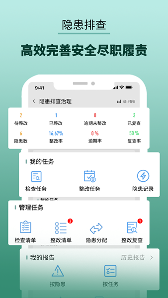 隐患预警、隐患排查、安全隐患上报、隐患整改、安全隐患上报等功能。