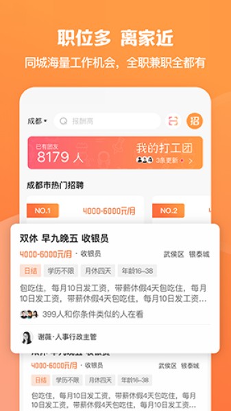 面咖让每个求职者都能找到心仪的工作,海量优质职位任你选择。这里有详细的分类信息可供查看了解哦,而且还能根据你的要求筛选出合适工作岗位;你可以与招聘方直接在线交流和沟通了,让你能够轻松找好工作。欢迎有需要的朋友下载使用!
