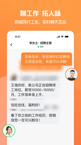 2、线上即可快速联系到满意的求职者或企业人员随时随地咨询相关问题。