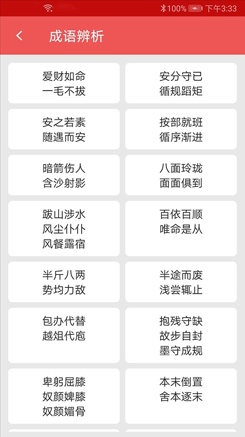3、【分类清晰】:按朝代划分成四千多条成语,还涵盖现代流行、古代古典、现实文学等主题风格,对每个成语进行了清晰的分类管理,