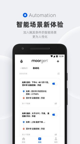 摩根无线智能家居制造的移动端控制系统平台app是专门为广大用户打造的一款智能化的家居生活服务软件,用户通过使用这个应用可以对智能家居进行操控和管理,在你家里安装了它之后你可以将智能家居添加到你的手机当中然后就可以远程打开设备来查看详细的情况;除了支持连接智能家居之外,还可以直接与智能电器进行交互式的语音操作方式为你提供优质的服务体验,让你能够更轻松地获取各种功能信息。同时,当有新的智能设备发生故障的时候,你可以及时在这里了解详情内容并一键报修、维修等一系列问题解决方法等等多种实用的功能任你选择性使用的非常不错,喜欢的朋友欢迎下载摩源智能家居制造的移动端控制系统平台安卓版进行使用。