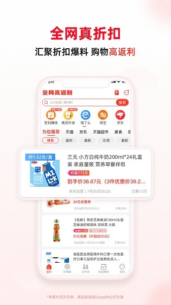 千余家知名电商,服装、美妆、居家、母婴、食品、鞋包、数码电器任意返!