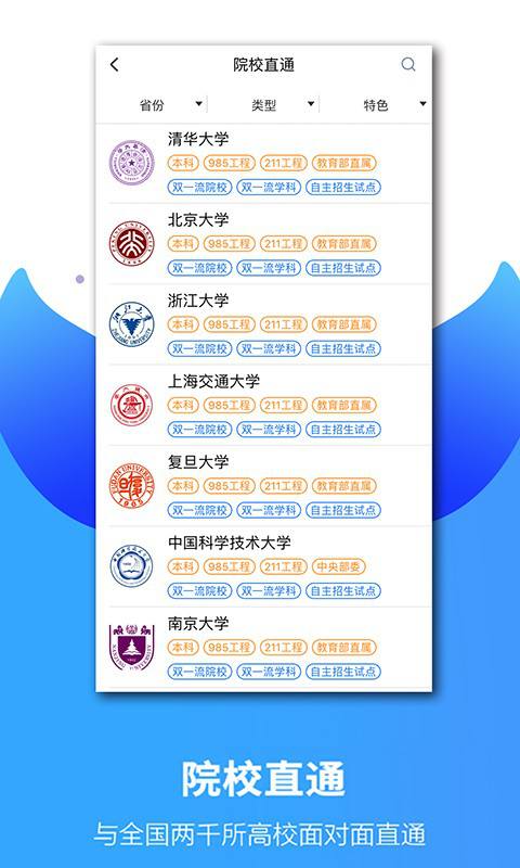 5.【院校大全】收录全国2800多所的院校详情,各省分数线、重点专业一网打尽,快速找到理想的院校。