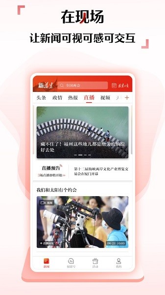 1、个性化推荐:你用得越多,我们推荐的越准,你关心的,尽在眼前;2、头条资讯阅读:福建最权威的资讯网站,头条信息一手掌握,随心订阅;3、精彩视频直播:热门栏目独家呈送,新闻现场直击新闻事件。4、互动直播:有颜值有才华,有料有趣,全天候直播新闻事件。