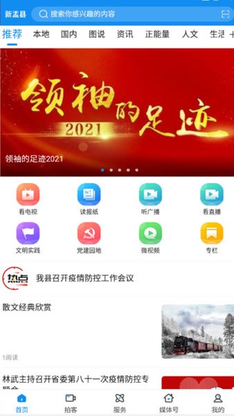 新寰州融媒体中心新扇县融媒体中心新茵县融媒体中心app是专为新疆维吾尔自治区新玫县县居民打造的一款综合性新闻客户端应用,该软件主要针对新疆维吾族人民推出,在这里汇聚了海量新闻资源和政务、民生等多种功能板块,满足用户的生活需求,并且还有各种视频直播可以观看,带你直击现场。