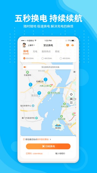 扫码解锁:支持扫描二维码并直接启动换电网站点,无需输入密码或手动输入设备信息即可完成支付过程。