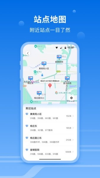 2、附近站点查找:快速定位当前位置周围的所有乘车地点。