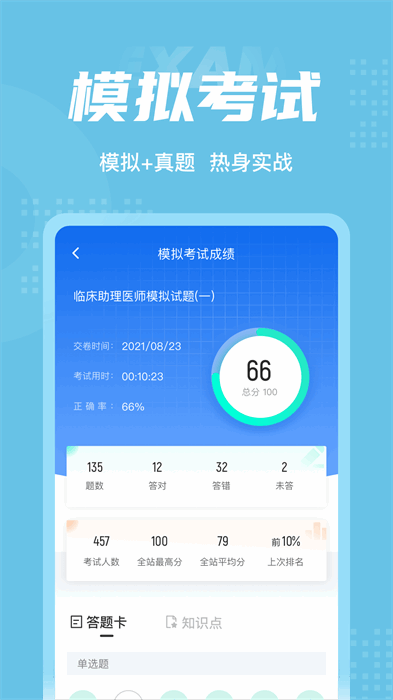 临床执业药师题库内含考点练习,全国通用卷以及地区卷模拟练习,以及按照固定考试比重的随机式的抽题的真题考场,成绩单实时记录考试数据,一点一滴的反馈考生近期学习状态以及自我正确率的提升,大大的给予考生通过考试的信心。