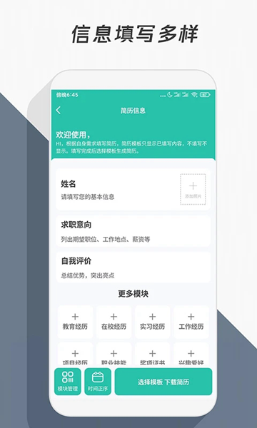简历模板由温州市人力资源部(原杭州社保)与成都五湖区人力资源管理部门联合推出的一款专业在线查询招聘信息的应用APP,通过该APP你只需要输入职位名称便可获得相应的简历呈现结果。