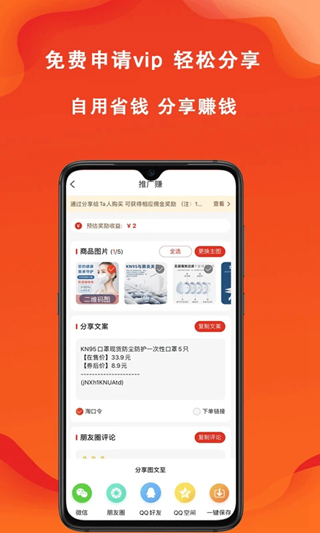 【分享赚钱】将商品进行推广或转发好友均可获得奖励;
