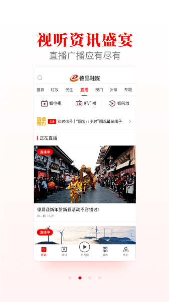 软件中包含超多资讯内容可以进行浏览,用户可以通过app了解本地最新动态信息以及各种新闻政务服务等等;在软件中还可以观看直播视频、听广播等功能。喜欢的朋友赶紧下载吧。