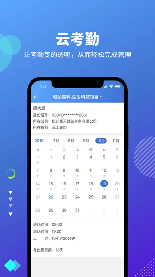 云住工是国家住房和城乡建设部主管,中国房地产产业协会、公安部刑事执法局主办,是中国房产行业互联网+政务服务平台之一。公司始终坚持“以企业发展为根本”的服务理念,努力打造以企业经营为中心的企业经营管理信息化平台。通过云住工人端APP实现对工人岗位真实性及质量评价打分分析;提供现场劳务用工监管系统应用程序软件(App)或移动端安装并运行,具备在线签到功能,可实时跟进出勤状态。