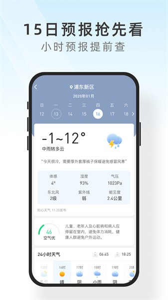 轻松查阅24小时内天气变化,提早预防早晚温差过大。
