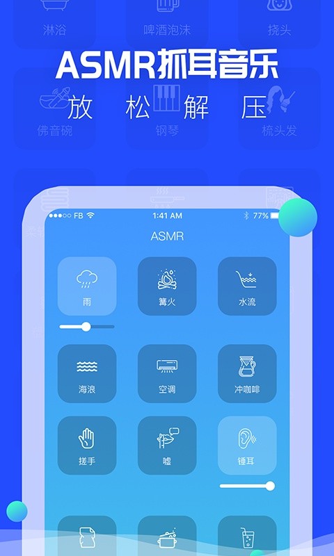 持续更新升级:不断添加新功能和优化细节,确保始终能够享受到最新版本的音乐世界。助眠音乐可实现自由创作app是专为广大的睡眠者们打造的一款非常优质且实用的手机端音乐播放软件,该软件整体界面十分的简洁,内含功能丰富多样,提供了多种不同的音效、场景和音乐资源供你选择使用。软件体积小巧,不占用太多手机内存,让你可以轻松找到自己喜欢的音乐进行在线播放试听,还可以自定义设置播放时间,让用户可以快速按照个人需求来随心所欲的聆听,感兴趣的朋友快来下载吧!