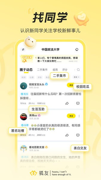 狐信狐友校园圈子亮点: