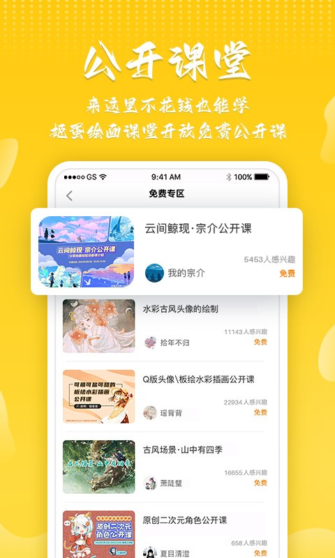姬蛋绘画教育学习应用平台功能特色: