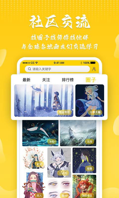 软件拥有绘画教学课程、在线交流互动等等功能服务,可以让学生轻松提高自己的绘画能力,喜欢绘画的朋友欢迎前来下载使用。