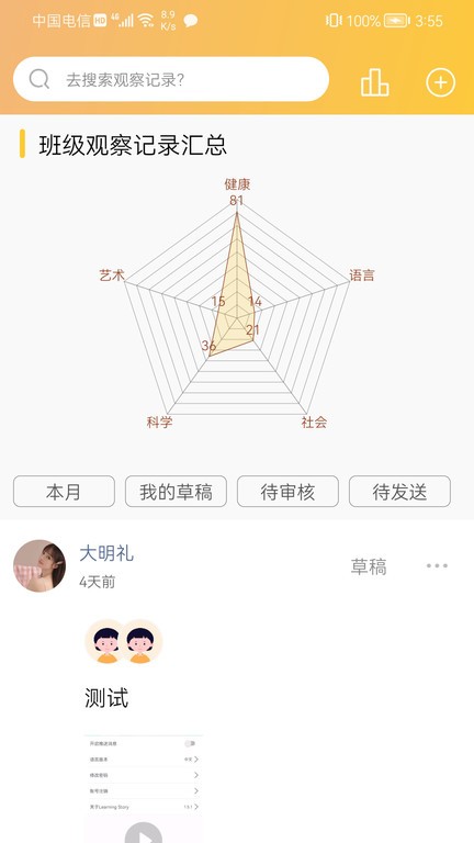 家长朋友们的掌上家园,孩子在幼儿园的成长记录一目了然,更可以及时接收到学校的重要通知,不错过每一个重要时刻,真正做到家校沟通无距离,沟通方便快捷。